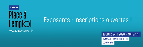 Val d’Europe Agglomération organise la nouvelle édition du Salon Place à l’Emploi Val d’Europe, qui se tiendra le jeudi 2 avril 2026 au gymnase David Douillet à Coupvray.